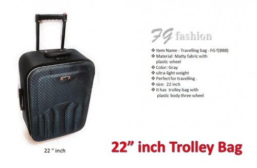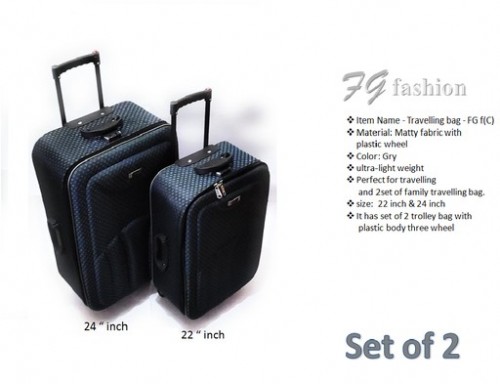 Traveling Bag FG f(A) Material:-Matty fabric with plastic wheel. Colour:Gray Ultra light weight perfect for Traveling & 2set set of family traveling. Size:-22" inch & 24" inch